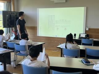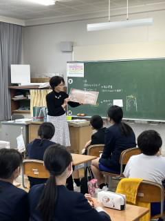 6年生はこれまでに「庄町のよさを伝えよう」の学習として、「庄町のししまい」や「庄町の自然」「農作物」などについて調べていますが、あくまでも自分たち(子ども達)の視点からの調べ方になっています。今回は野村不動産の方に「まちをみるめ」の授業をしていただき、自分たちが調べた視点とは違う見方でこれまでの調べた内容を見直してみることが目的です。