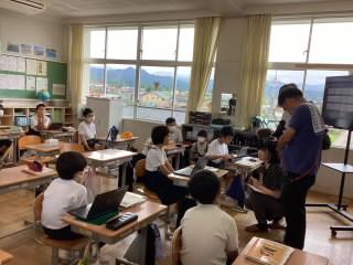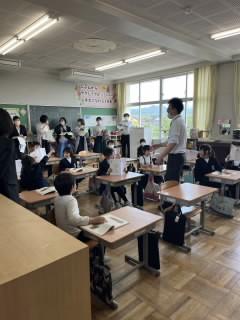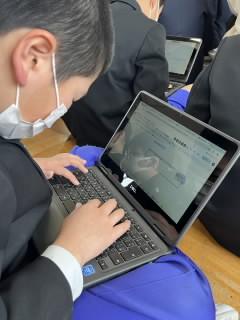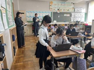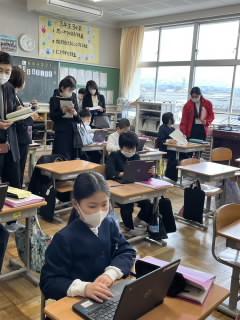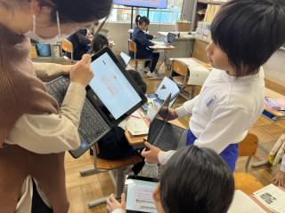 その後、全校の教室をmeetでつないだお昼の「庄チャンネル」の放送では、あいさつ運動でよかったことと、次に頑張ってほしいことを伝えました。次にどうしたらよいか話し合い、すぐにみんなに自分たちで伝えていることがよいですね。