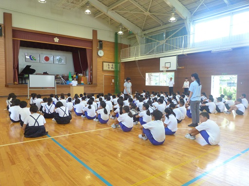 その後、校長先生から4・5・6年生が一生懸命プール掃除をしてくれたことが伝えられ、1~3年生からは「ありがとう」の言葉が、4・5・6年生は、感想を伝え合いました。