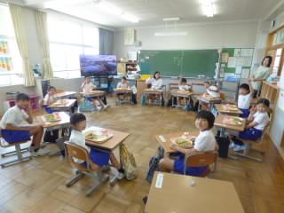 今回もたてわりグループごとに集まって、楽しく給食を食べました。給食を食べながら、6年生が考えた山手線ゲームや間違い探しクイズをしたり、聴きたい音楽を聴いたり・・。中には、”これまでのたてわり給食でしたことおぼえてるかな?ゲーム”もしていました。どのグループも楽しそうで、「やはりたてわり給食はいいな」と感じました。