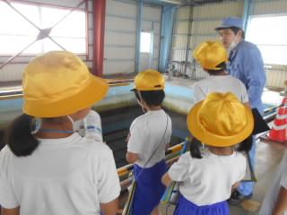 水族館では、ちょっぴりどきどきしながら、たこやさめ、えいなどたくさんの魚に触れることができました。