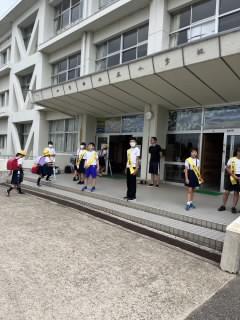 全国的に猛暑が続いており、その対策として、7月2日(水)から18日(金)と8月6日(水)の期間に限っては、体操服での登下校を可としました。7月2日(水)の登校時には、多くの子ども達が体操服で登校でした。
