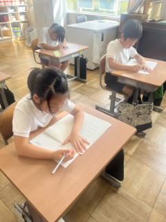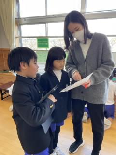その後、教室や廊下で、高学年が低学年に教える姿、低学年同士で練習する姿が、学校中あちらこちらで見られました。