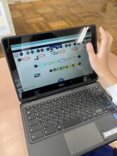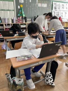 子ども達は、めあてをもって自分の学びを進めています。一人で学んだり、必要な時には友達とつながって学んだり。そのつながりは、学ぶ目的のためのつながりに。