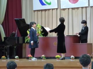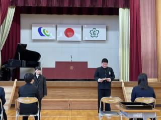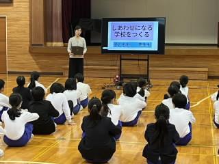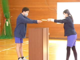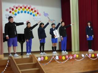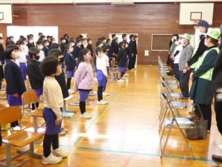 6年の髙橋さんから児童代表でお礼の言葉が伝えられ、全校で「ありがとうございます」の感謝の気持ちを伝えました。