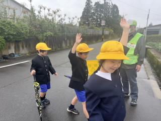あいにくの雨ふりとなりましたが、傘をさして安全に歩く学習ができました。
