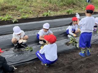 そして、午後からはフリータイム!今度は違うメンバーでドッチボールをする子、芝生の坂で敷物スライディングをする子、階段でじゃんけんグリコをする子。それぞれに楽しみました。