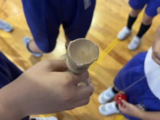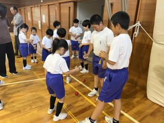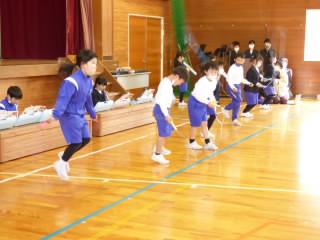 よく知られている技の、大皿と小皿に交互にのせる「もしかめ」の他に、「ろうそく」「とうだい」「うぐいす」と難しい技にもチャレンジ!特に、「うぐいす」は、皿とケンの上に玉を載せてバランスをとる大変難しい技ですが、チャレンジした6年生が成功した瞬間、会場中に、大きな歓声と拍手が沸き起こりました!