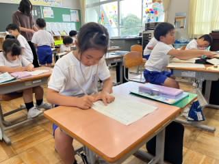 感想を聞いてみると、「体操服の方が涼しい」という声が多く聞かれましたが、中には「でも、制服の半ズボンの方が生地が薄くて涼しい」という声も。しっかり自分で理由を考えて判断・選択している姿は、さすが庄小学校の子どもだなと感じます。