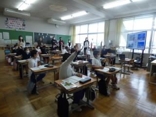 5限目が始まると、ちょっぴり緊張しながらも張り切って手を挙げて話したり、友達や先生そして今日は、おうちの人とも一緒に考えたりする姿がありました。