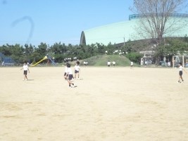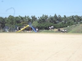 ティーボールやサッカーを楽しむ子どもたち。快晴だったので、気持ちよさそうです。