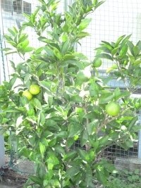 運動場にある青みかんが大きくなりました。度重なる台風にも負けずがんばりました。