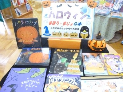 図書館は、ハローウィンの掲示や関連図書で楽しい雰囲気いっぱいです。