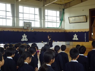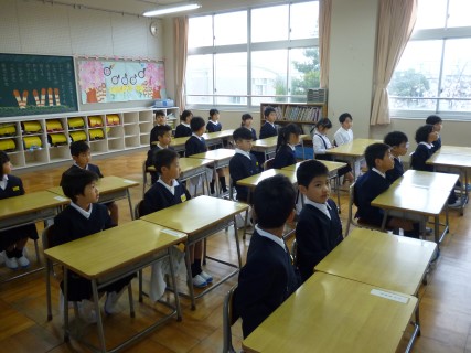 1年生は良い姿勢で先生のお話を聞くことができました。