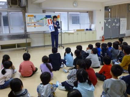 1限目に、白山警察署交通安全課の方から横断歩道の渡り方や防犯「いかのおすし」について指導していただきました。