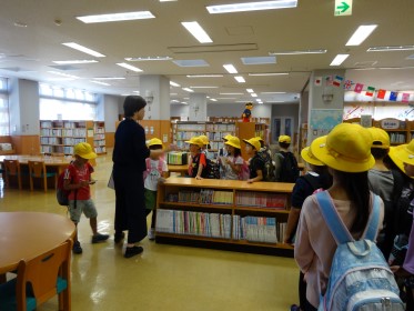 2年生は松任図書館を途中で見学し、たくさん質問しました。