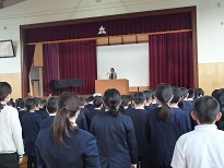 児童集会では書き初めや水泳大会の表彰と2月の学びっこの話がありました。