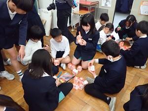 全校放送で一斉にスタート。各教室には保健委員さんが出向き、「目をギュッとつむって…」「次は下を向くよ~」など、優しく声をかけながら進行してくれました。