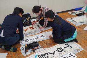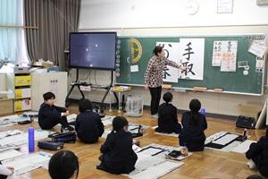 3年生から6年生が、書道教室の山本先生から書初めの指導をしていただきました。