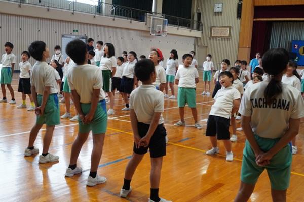 応援練習は、朝の「ばっちり」の時間に赤組白組に分かれて行っています。どちらの団も、応援団の6年生が中心に自分たちで進めています。応援団以外の子どもたちも、しっかり話を聞いて自分で考えて行動しています。どの子も、先生方の指示や指導がなくても自分たちで考えて行動できる橘っ子に成長しています。運動会が楽しみです。