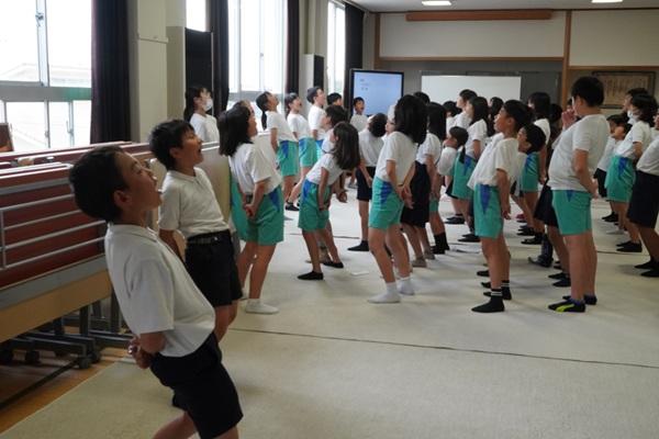 みんなも保健委員さんの声に合わせて、目をつむったり開けたり、一生懸命ストレッチをしていました。