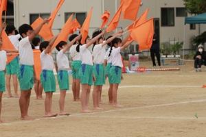 心をひとつに盛り上がった応援合戦,笑顔いっぱいの1,2年生のダンス,力強い3,4年生のよさこい,見事な組体操と魂のこもったフラッグがみている人に感動を与えた6年生の表現,そして,どの競技からも、「橘っ子」の全力と成長が伝わってきました。