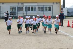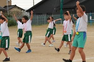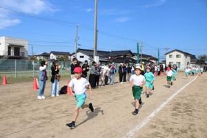 少し雨がぱらつきましたが,暑くも寒くもない中で,橘小学校の運動会が予定通り開催されました。