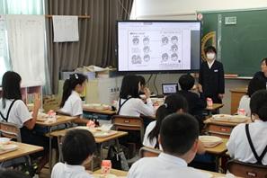5年生の教室に栄養教諭の中尾桂子先生が来てくださり、食育授業を実施しました。