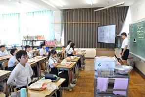 9月18日(木)、3年生の教室へ調理員さんが来てくださり、一緒に給食を食べました。