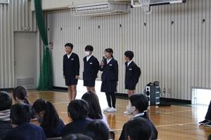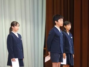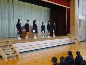 今月の集会では、後期の役員の任命がありました。児童会の各委員長からは橘小学校を「みんな優しく、親しみやすい学校」にするための所信表明がありました。思いのこもった立派な所信表明でした。
