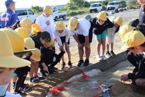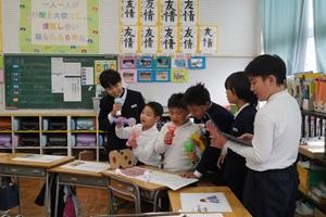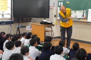 2年生の子どもたちが、金沢河川国道事務所から、手取川の大きさや住んでいる生き物のことなど、たくさんのことを教えていただきました。とくに手取川の生き物の標本を見た時の子どもたちの目は、キラキラと輝いていました。