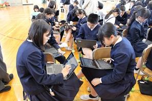 実際にクロムブックで検索して、より正しい情報を得るためには何が大切かをグループで話し合いました。