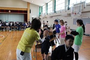 全校放送で一斉にスタート。各教室には保健委員さんが出向き、「目をギュッとつむって…」「次は下を向くよ~」など、優しく声をかけながら進行してくれました。