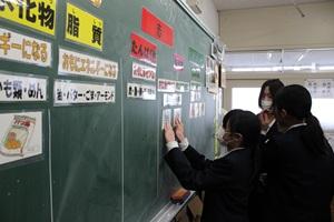 実際の給食献立をもとに食材を分類していく中で、バランスよく5大栄養素を取り入れる大切さを学びました。