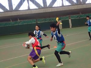 12月6・7日の2日間、小松ドームでタグラグビーの大会がありました。橘小学校からは「出たい!」と志願する15名の児童が参加しました。負けた試合もありましたが、その経験を糧にしてどんどん成長する姿が見られました。どの児童も楽しみながら参加し頑張っていました。