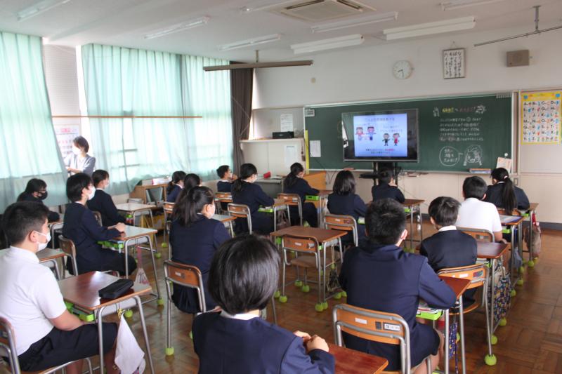 分散登校初日には、「安心安全な学校生活を送るために」「8つのやくそく」のお話を聞きました。