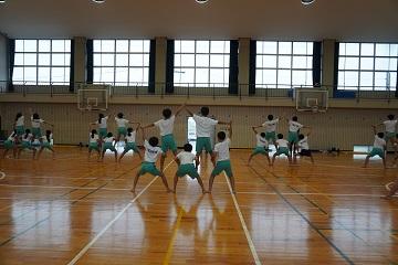 応援団の呼びかけで、明日に向けてエンジンをかけました。