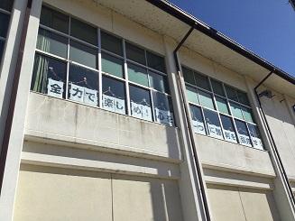 体育館に貼ってあるスローガンに、今年は飾りがつきました。実行委員さんが、プラスアルファで考えを出してくれました。
