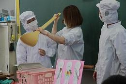 カレーの作り方についてのクイズ大会や、調理衣試着、大きなスパテラ体験などを通して、普段は知ることのできない給食のおいしさのヒミツを学ぶことが出来ました。