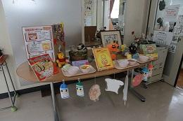 図書室前には、モデルとなった絵本と、給食調理員の先生による手作りサンプルが掲示されています。図書と給食のコラボで、子供たちもいつも以上においしそうに食べていました。