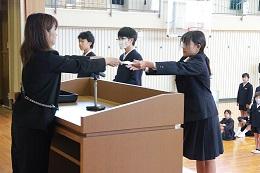 そこで、調理員の先生方から感謝の気持ちを込めて「ペロリ賞」の賞状が渡されました。