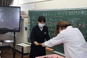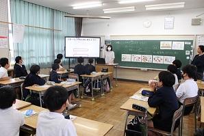 6年生の家庭科の授業に川北中学校の栄養教諭 中尾先生が来てくださり、給食の献立作りに取り組みました。