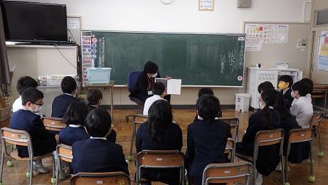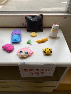 この日は、各学年に分かれ、作成していました。5・6年生は、針と糸を使ってマスコットを、4年生は、紙コップと乾電池で動くおもちゃをつくっていました。今、作品を玄関に飾っています。