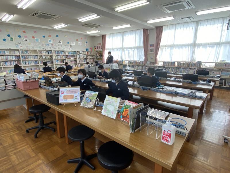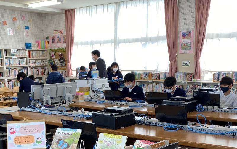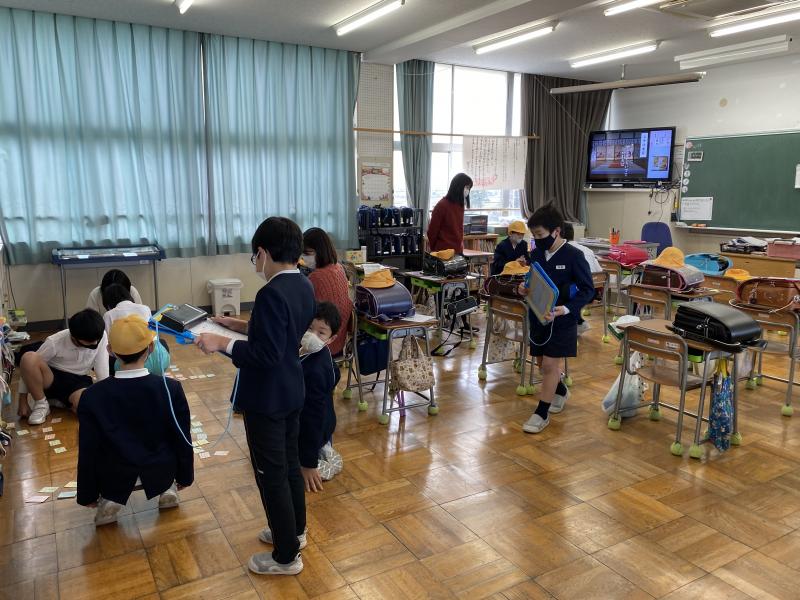 パソコン操作の練習の他、プログラミングで、ロボットに命令を出し、いろいろな動きをさせたりもしていました。ロボットに歌を歌わせている6年生もいました。