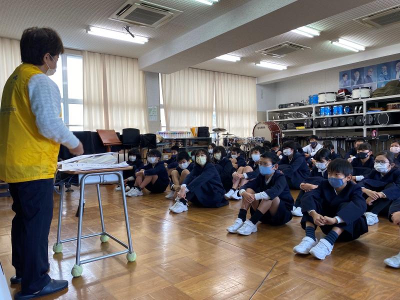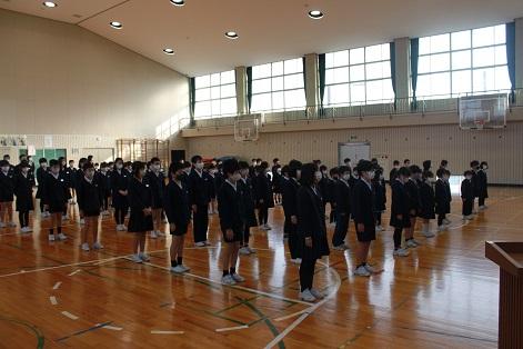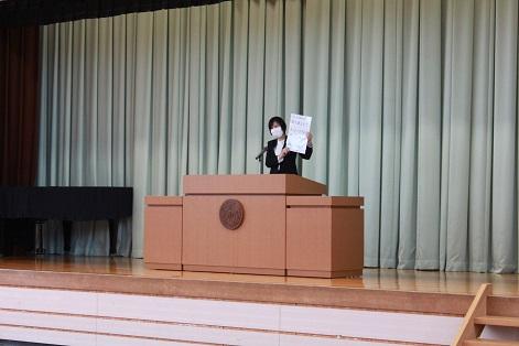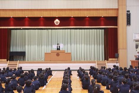 生徒指導の辻先生からは、「自分の身を自分で守ること」「挨拶をしっかり行うこと」について、保健安全の酒井先生からは、「早寝早起き朝ご飯」「感染症予防」についてのお話がありました。