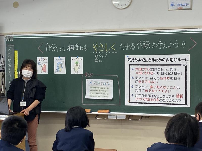 また、4・5・6年生は、スクールカウンセラーの中川先生から、「自分も相手にもやさしくする作戦を考えよう」というテーマで、自分も相手も大切にする「ヒッカリン」の育て方のお話をお聞きしました。一人一人が自分の考え方や行動について考える大変よい機会となりました。