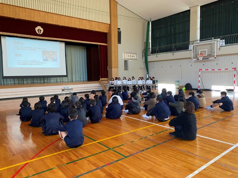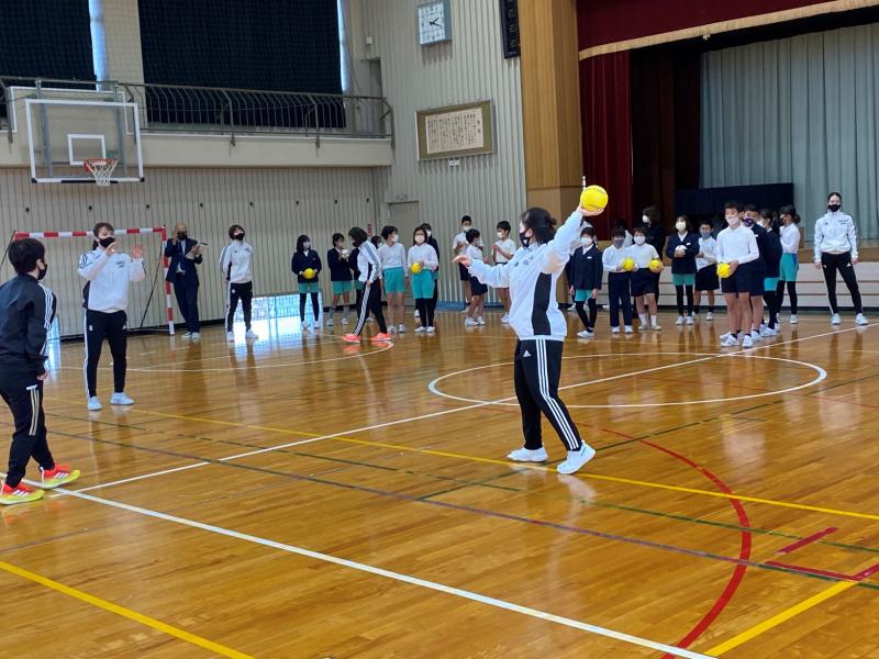 12月2日(木)に、5・6年生対象にプロスポーツ教室がありました。北國銀行の女子ハンドボールチームの選手が来校され、ハンドボールの楽しさの他、生きていく上で大切なことも教えてもらいました。