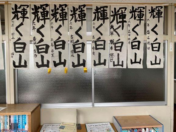 1年生は、書き初めデビュー。冬休みにたくさん練習してきた跡がうかがえ、全員立派に書き上げていました。