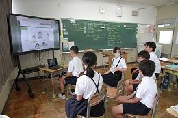 各教室で、meetによる平和集会を行いました。校長先生からは、「広島や長崎でたくさんの人が亡くなったことを忘れず、平和を願うバトンを受け取ってほしい」という歌詞に込められた思いについての話がありました。