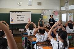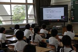 保健委員会は、熱中症予防のために、長休みや昼休みの終わりに、「水分補給を呼びかける」という取組をしてくれました。まだまだ暑い毎日ですが、おかげで熱中症で具合が悪くなる人はいません。